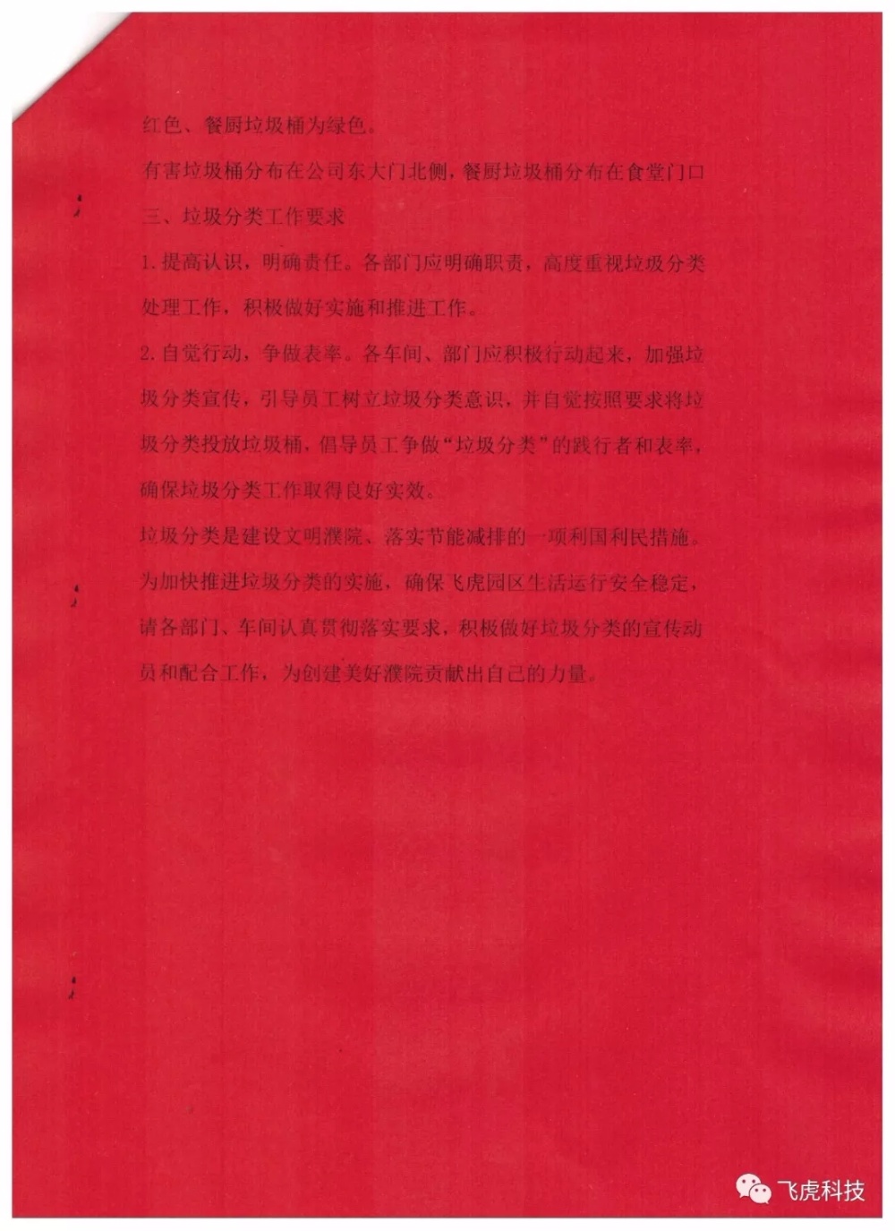 垃圾分類(lèi)是建設(shè)文明濮院、落實(shí)節(jié)能減排的一項(xiàng)利國(guó)利民措施。為加快推進(jìn)垃圾分類(lèi)的實(shí)施,確保飛虎園區(qū)生活運(yùn)行安全穩(wěn)定,請(qǐng)各部門(mén)、車(chē)間認(rèn)真貫徹落實(shí)要求,積極做好垃圾分類(lèi)的宣傳動(dòng)員和配合工作,為創(chuàng)建美好濮院貢獻(xiàn)出自己的力量。